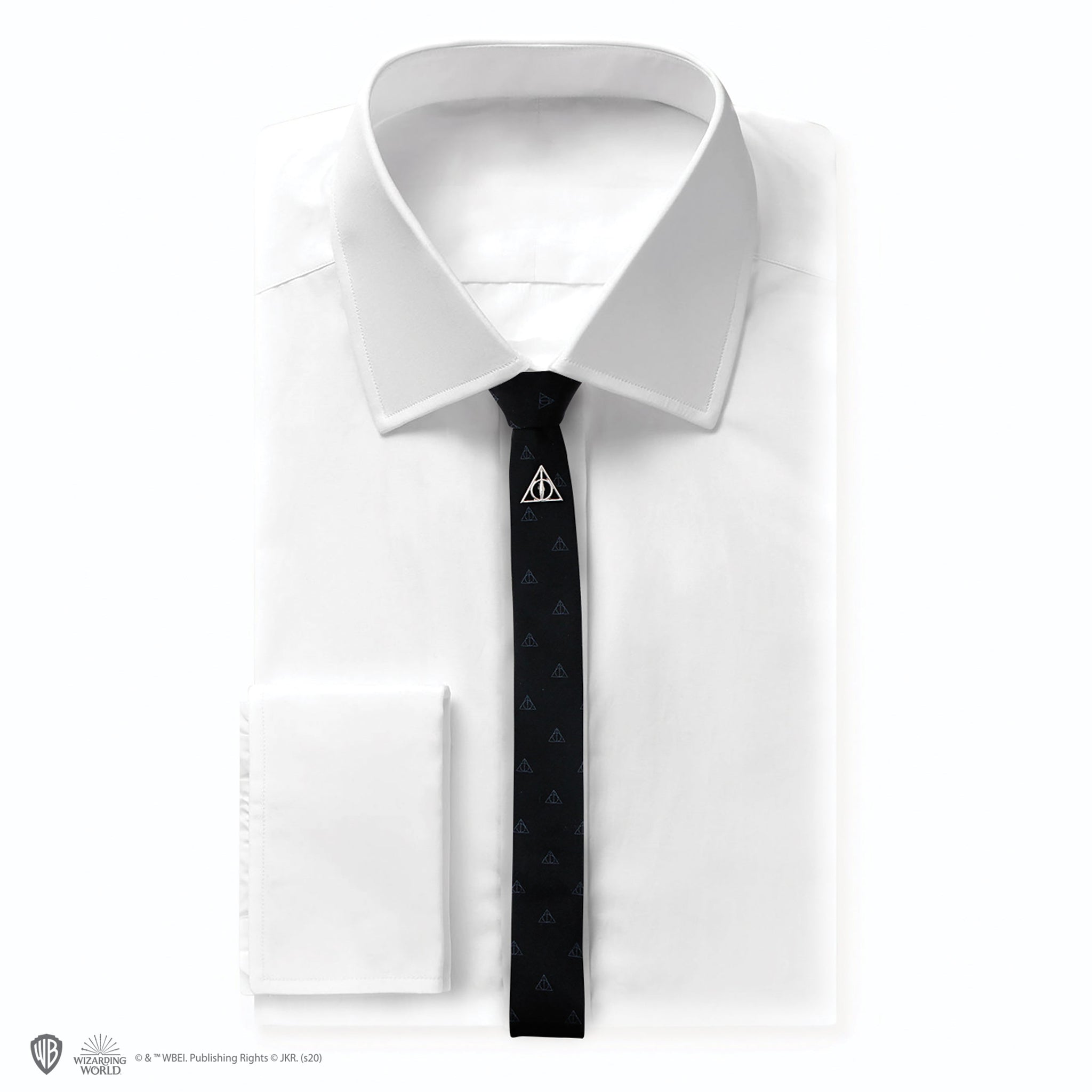 You will notice delicate and discreet embroideries of the Deathly Hallows. We added a pin with the same symbol.