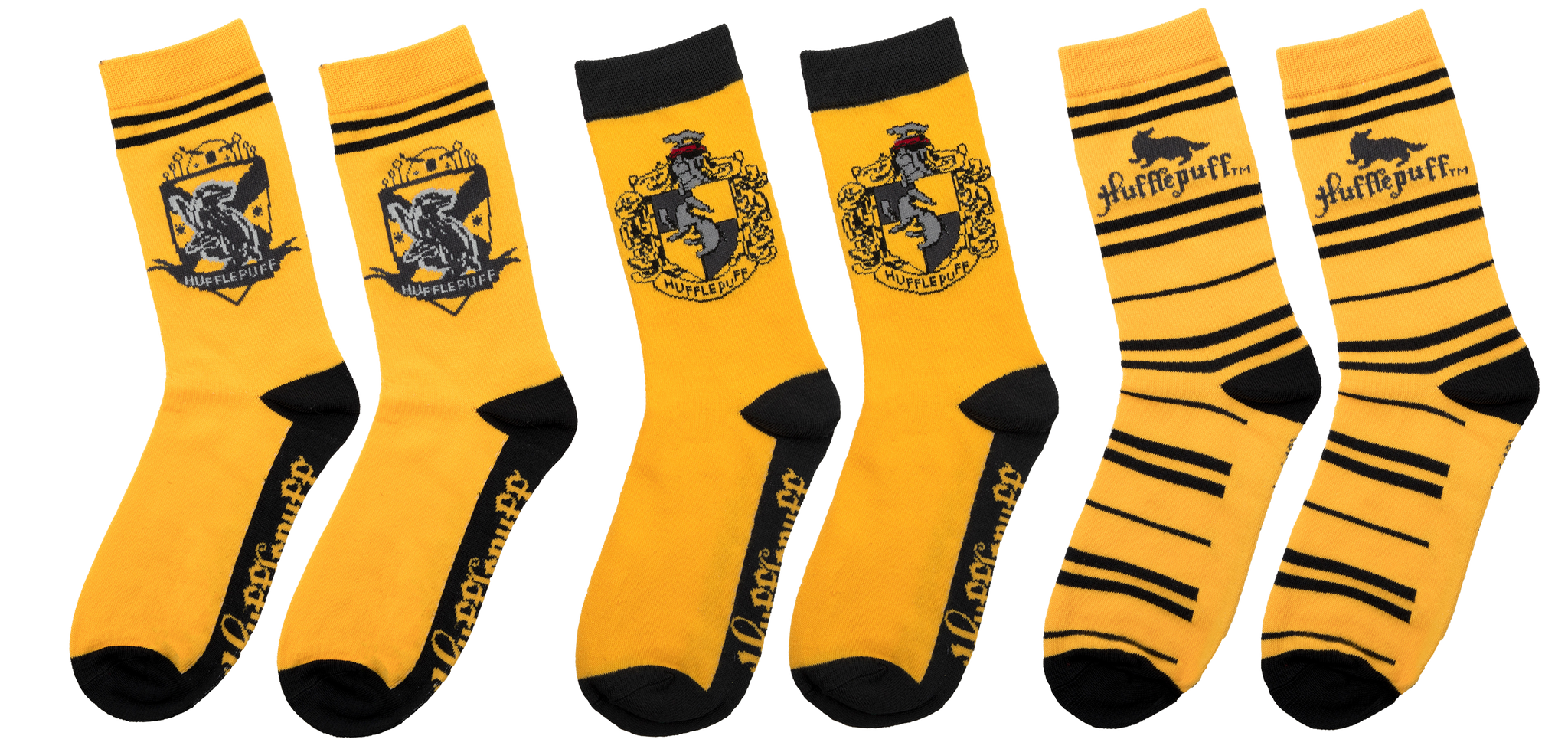 Show your Hufflepuff pride from head to toe with these 3 pairs of socks featuring Hufflepuff emblems and the recognisable yellow and black colors.