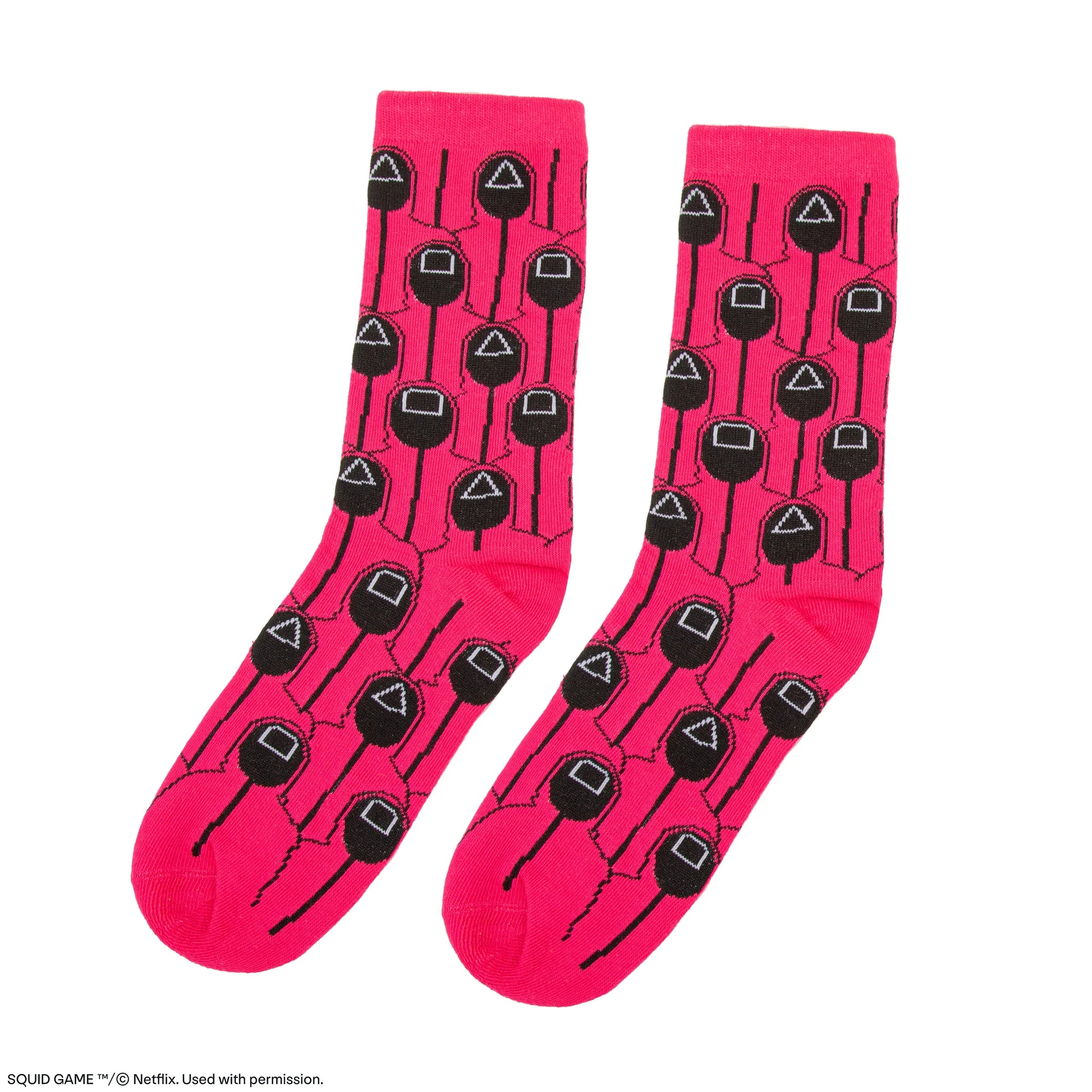 Embrace comfort and style in the midst of the suspenseful world of Squid Game! These socks, meticulously crafted from soft fabric and embellished with intricate details, not only keep you cozy but also pay homage to the acclaimed series.