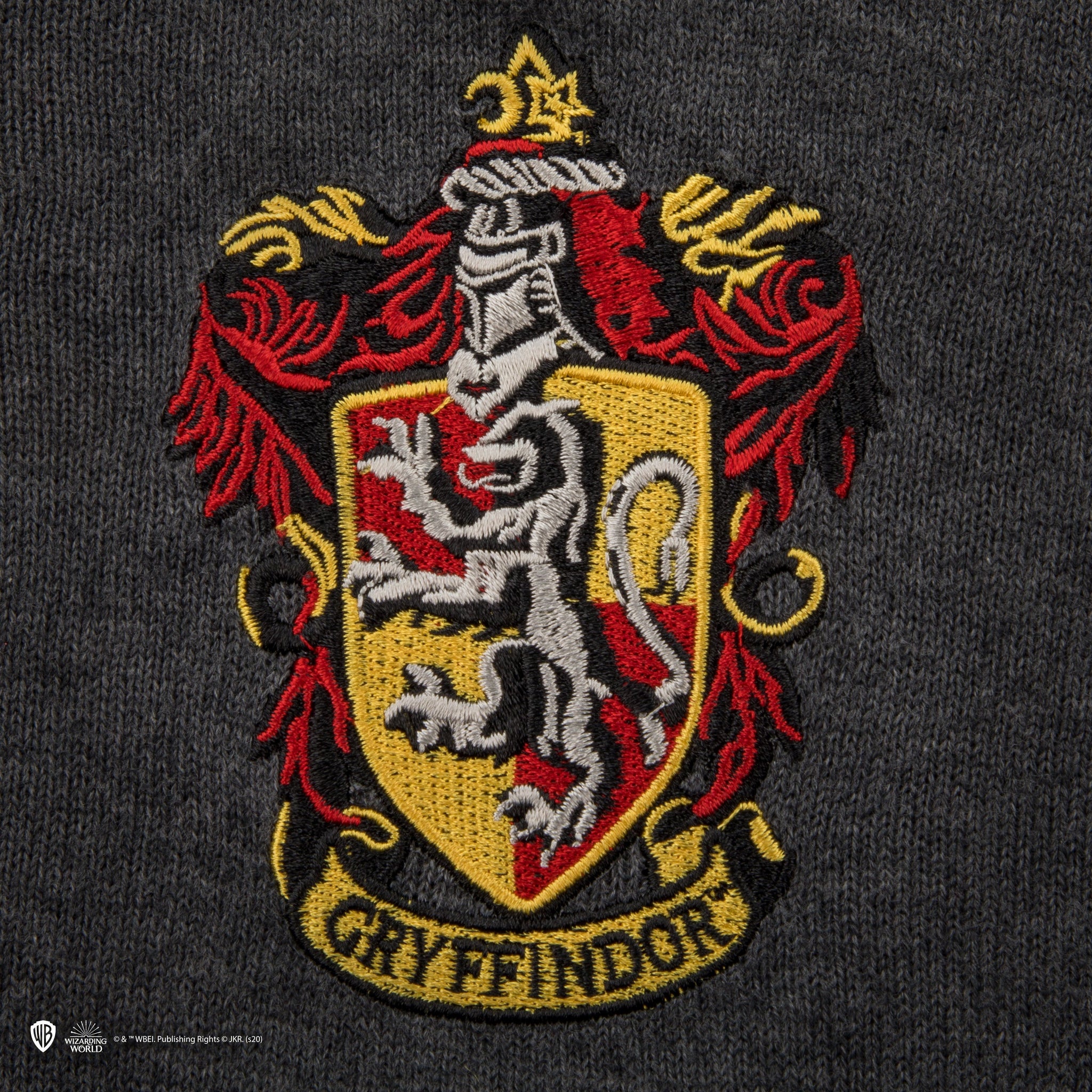 Gryffindor sweater as seen in the Harry Potter film series. Display your House pride with this V-neck sweater and its quality embroidered Gryffindor House crest. Made of soft-touch knit, it's easy to match your day-to-day clothes or to wear with your full Gryffindor uniform.