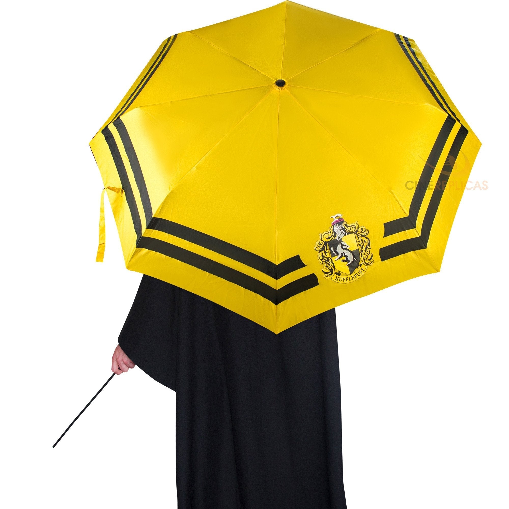 This umbrella opens with an automatic button and can be put away in its waterproof protective pouch. Showcase your House pride with this Hufflepuff umbrella!